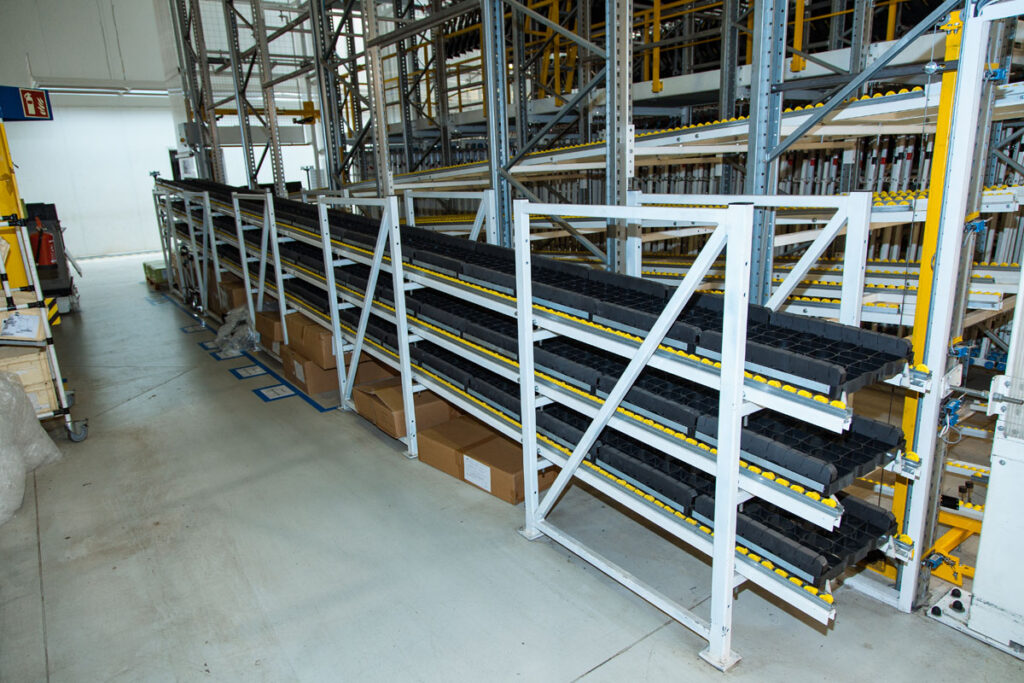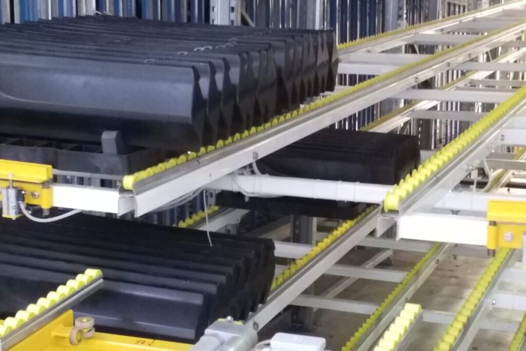 Smart-Flou® to grawitacyjny regał rolkowy z automatycznym lub pół-automatycznym odkładaniem i pobieraniem ładunków.